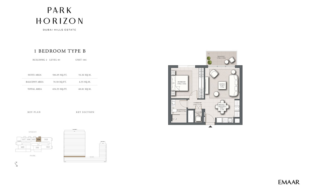 Building 2 2 Bedrooms Type B, Level 01, Unit 104 654.55 Sq Ft Apartment