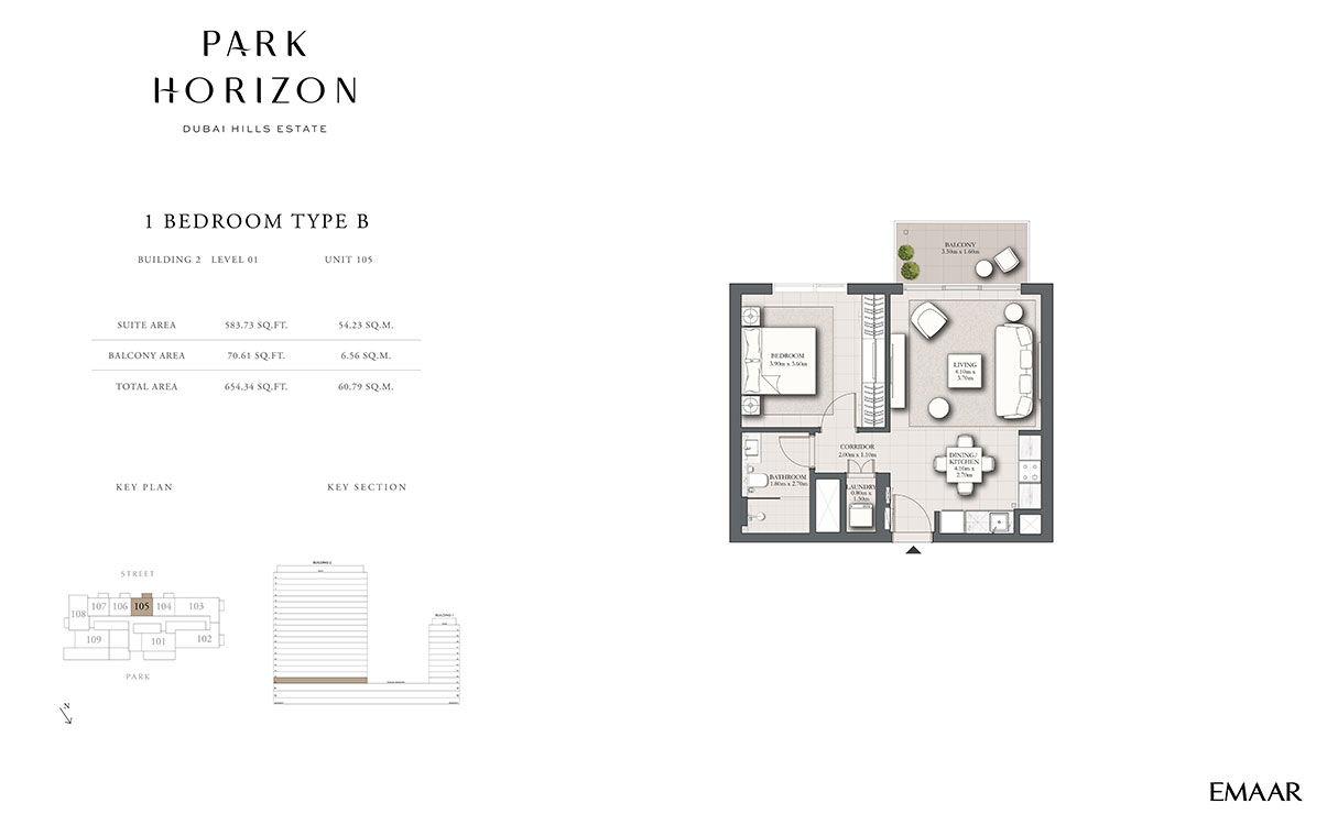 Building 2 1 Bedroom Type B, Level 01, Unit 107 654.34 Sq Ft Apartment