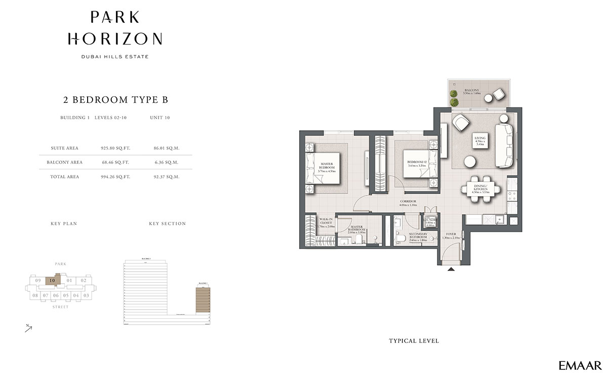 Building 1 2 Bedrooms Type B, Levels 02-10, Unit 10 994.26 Sq Ft Apartment