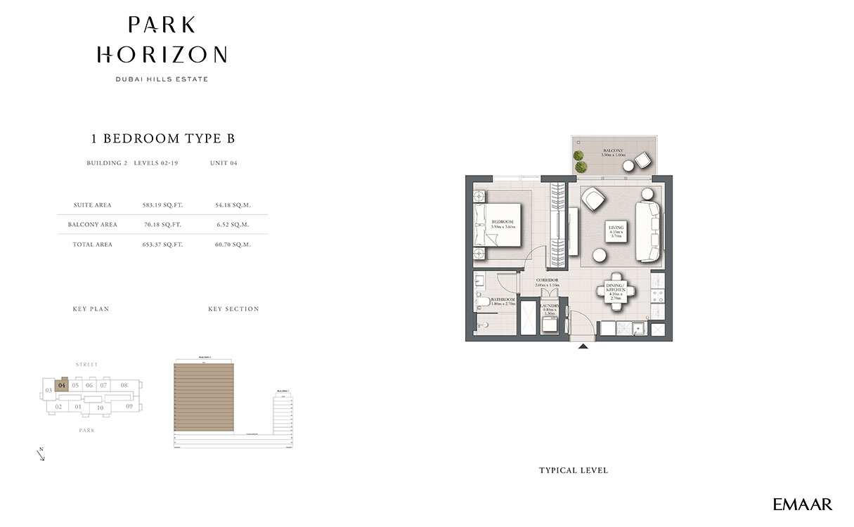 Building 2 1 Bedroom Type B, Levels 02-19, Unit 04 653.37 Sq Ft Apartment