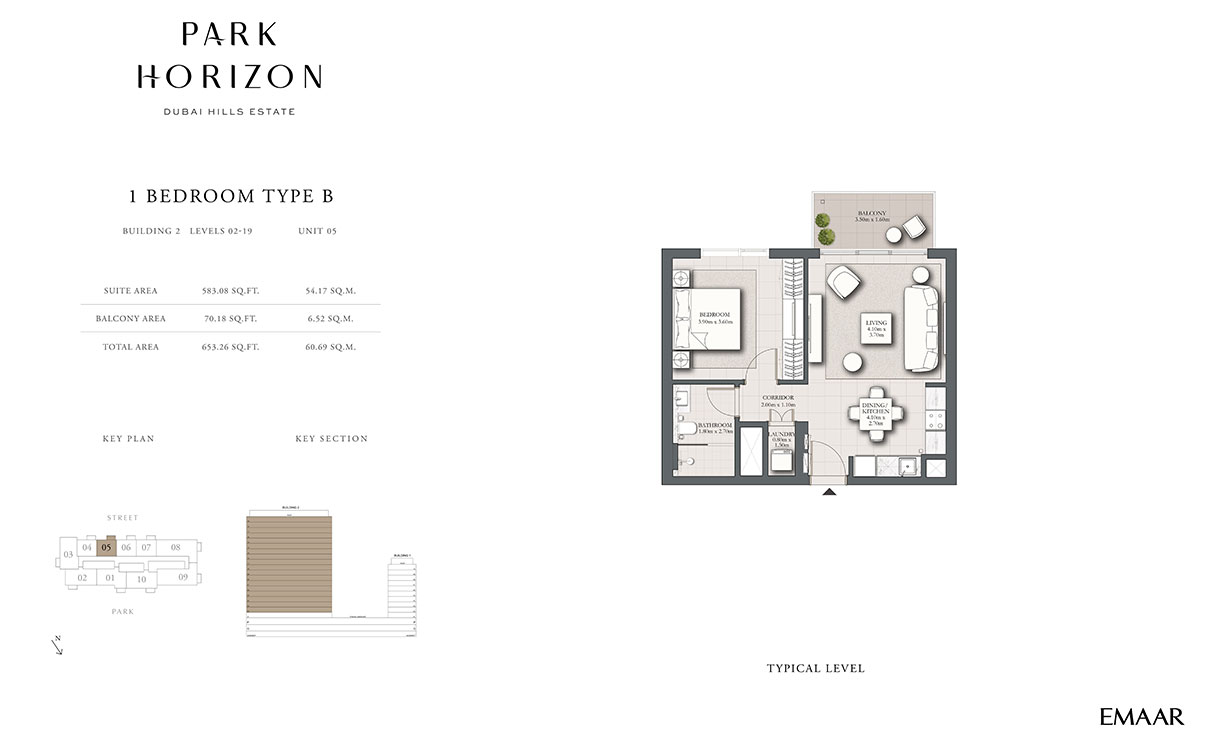 Building 2 1 Bedroom Type B, Levels 02-19, Unit 05 653.26 Sq Ft Apartment