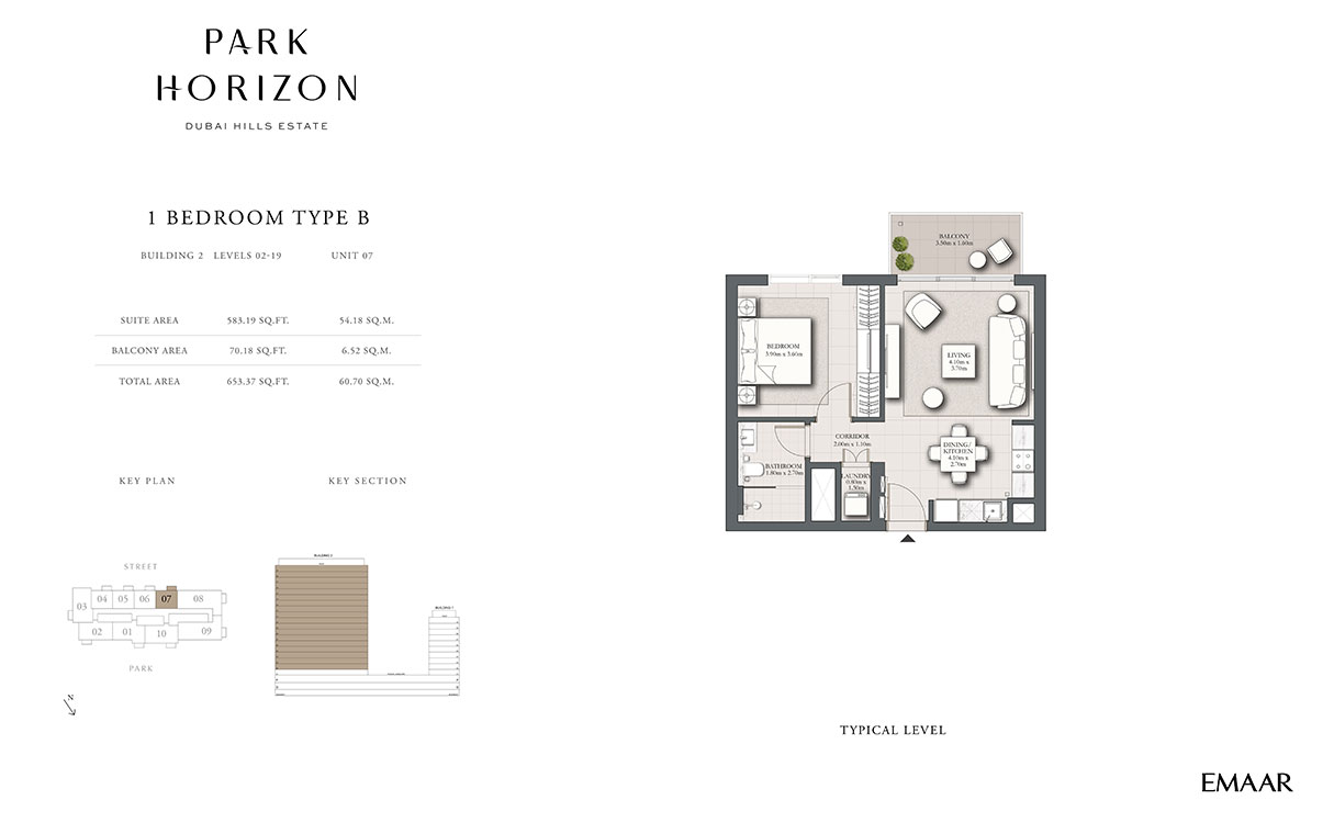 Building 2 1 Bedroom Type B, Levels 02-19, Unit 07 653.37 Sq Ft Apartment