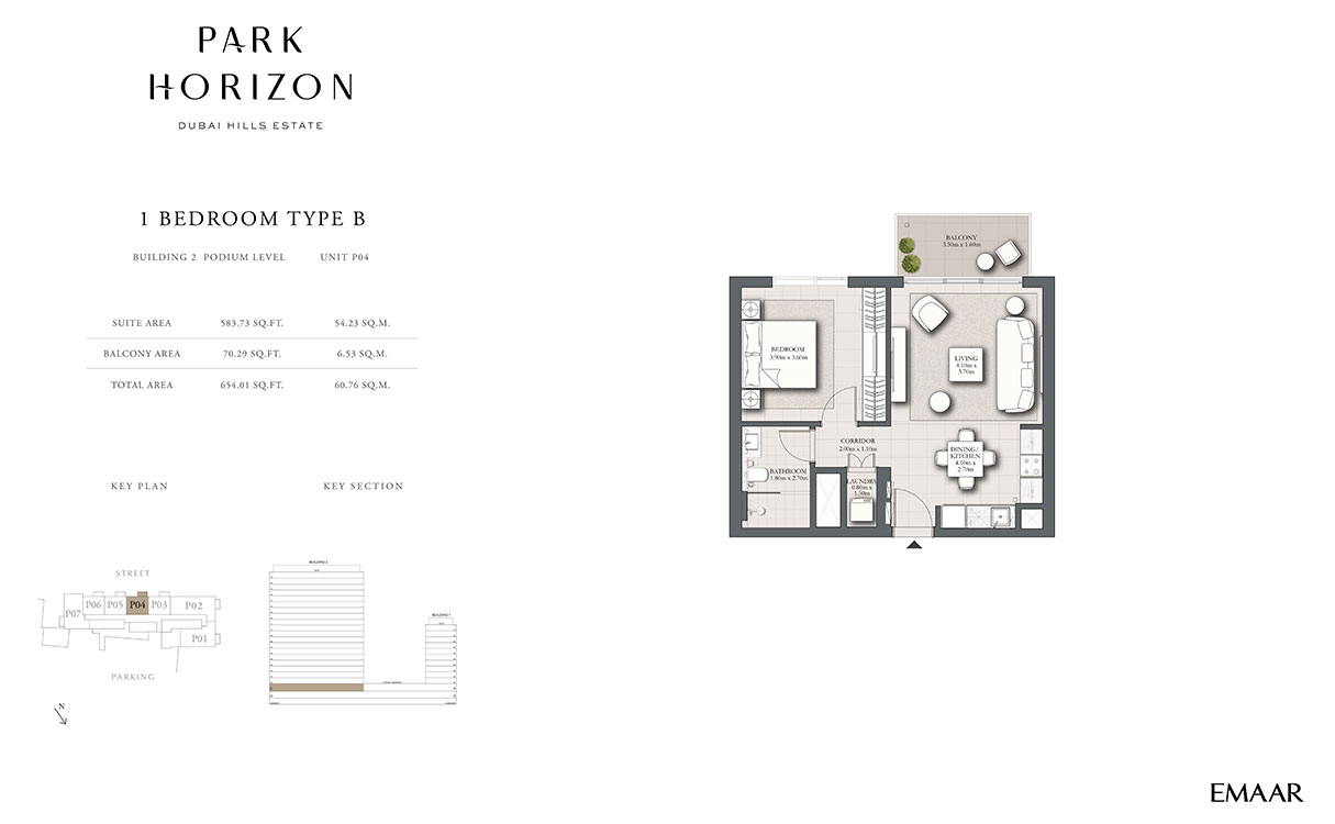Building 2 1 Bedroom Type B, Podium Level, Unit P04 654.01 Sq Ft Apartment