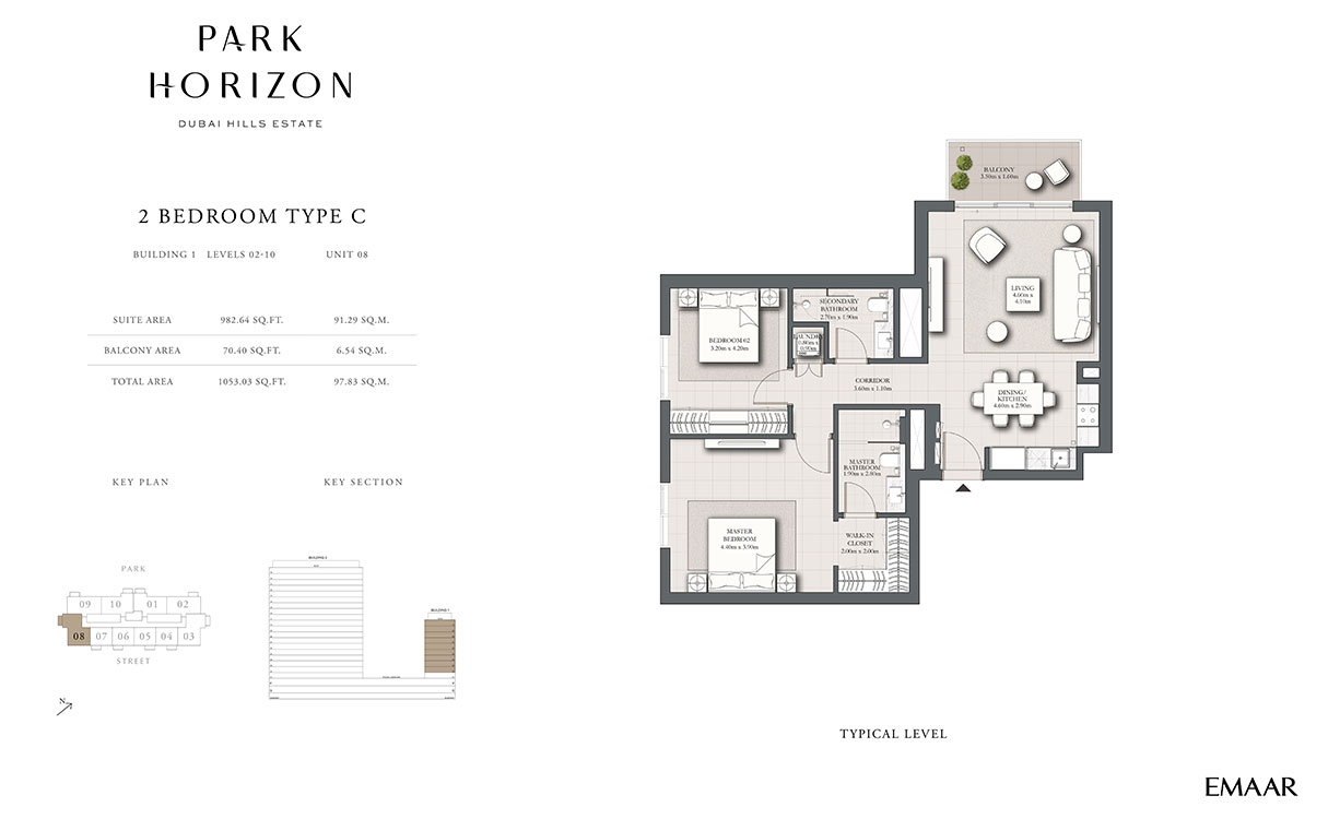 Building 1 2 Bedrooms Type C, Levels 02-10, Unit 08 1053.03 Sq Ft Apartment