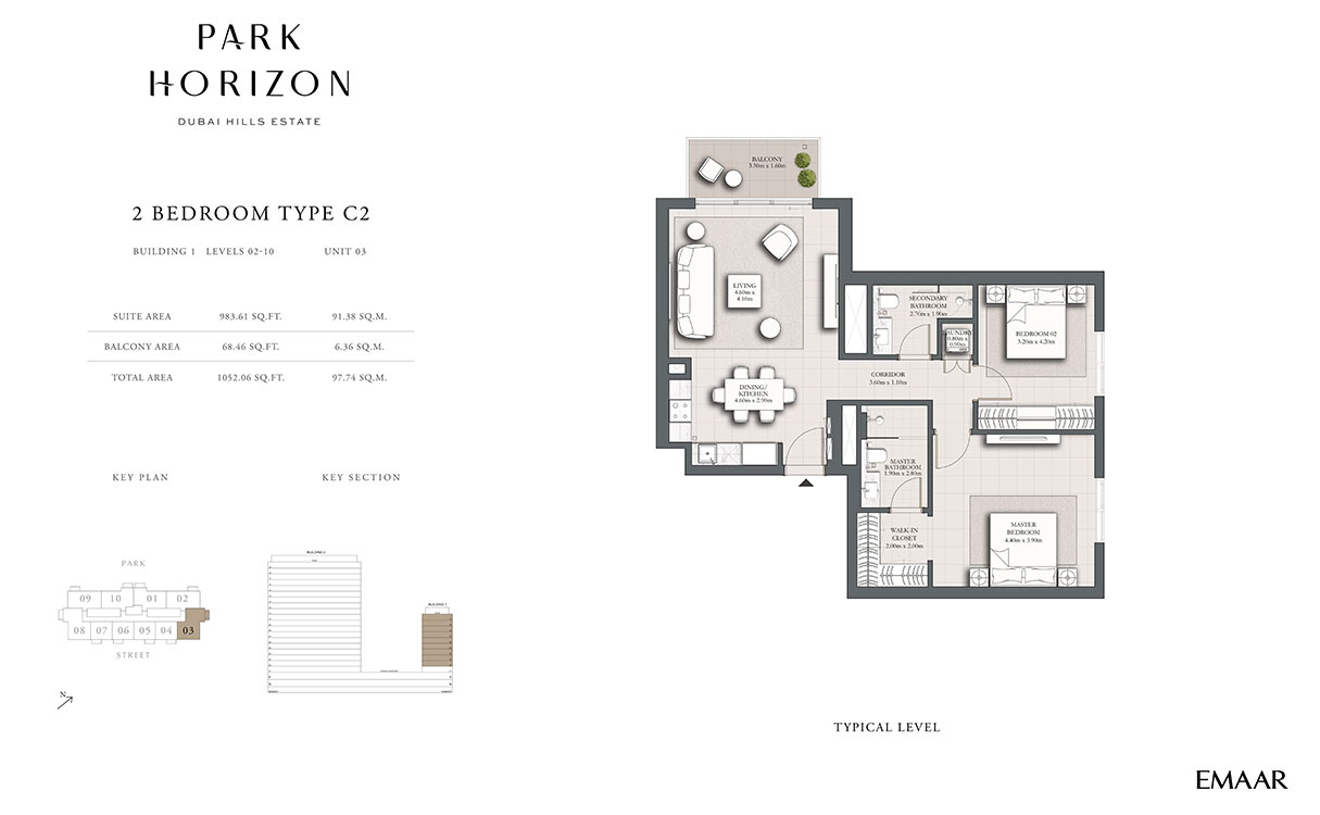 Building 1 2 Bedrooms Type C2, Levels 02-10, Unit 03 1052.06 Sq Ft Apartment