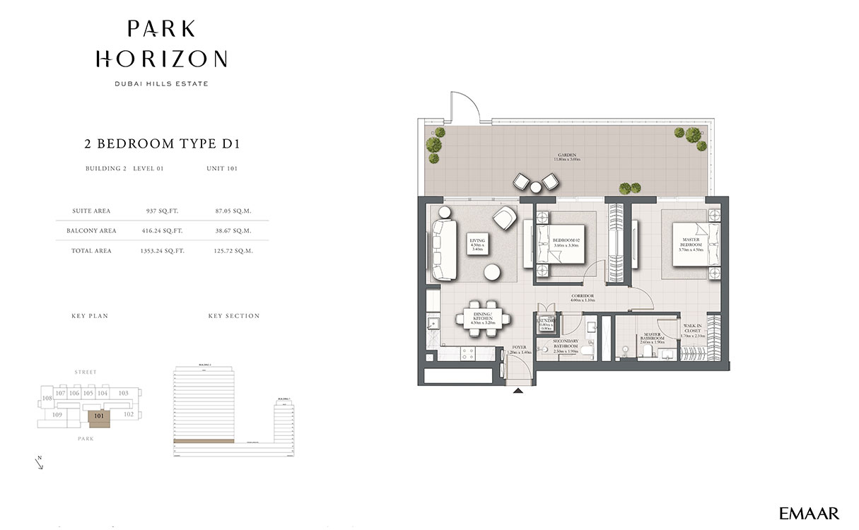 Building 2 2 Bedrooms Type D1, Level 01, Unit 101 1353.24 Sq Ft Apartment