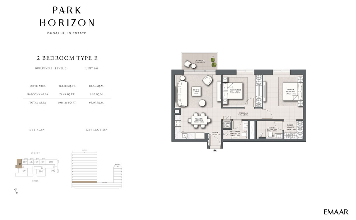 Building 2 2 Bedrooms Type E, Level 01, Unit 108 1038.29 Sq Ft Apartment