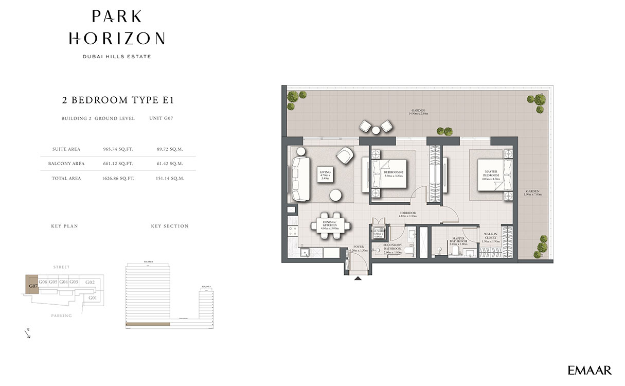 Building 2 2 Bedrooms Type E1, Ground Level, Unit G07 1626.86 Sq Ft Apartment