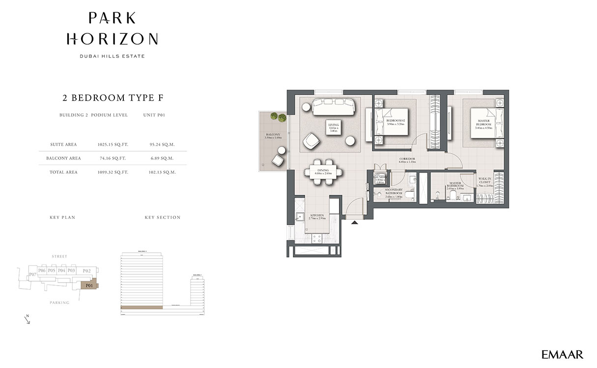 Building 2 2 Bedrooms Type F, Podium Level, Unit P01 1099.32 Sq Ft Apartment
