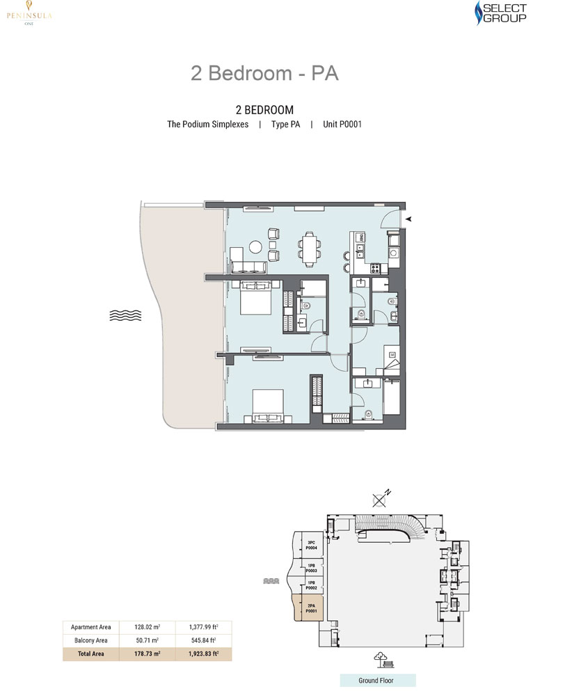 2 Bedroom All The Podium Simplexes, Type PA, Unit P0001 1923.83 Sq Ft Apartment