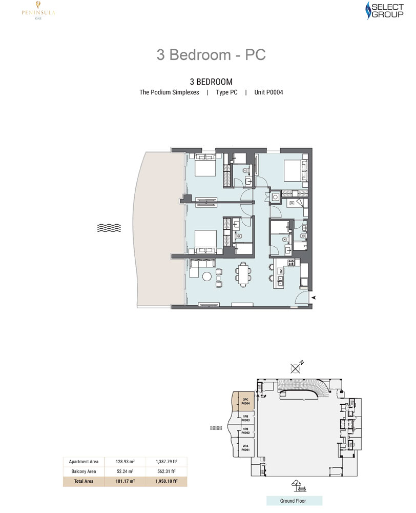 3 Bedroom All The Podium Simplexes, Type PC, Unit P0004 1950.10 Sq Ft Apartment