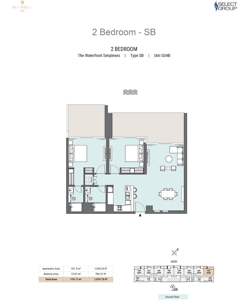 2 Bedroom All The Waterfront Simplexes, Type SB, Unit G04B 1874.75 Sq Ft Apartment