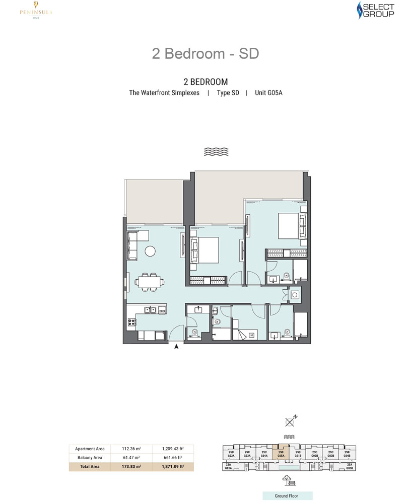 2 Bedroom All The Waterfront Simplexes, Type SD, Unit G05A 1871.09 Sq Ft Apartment