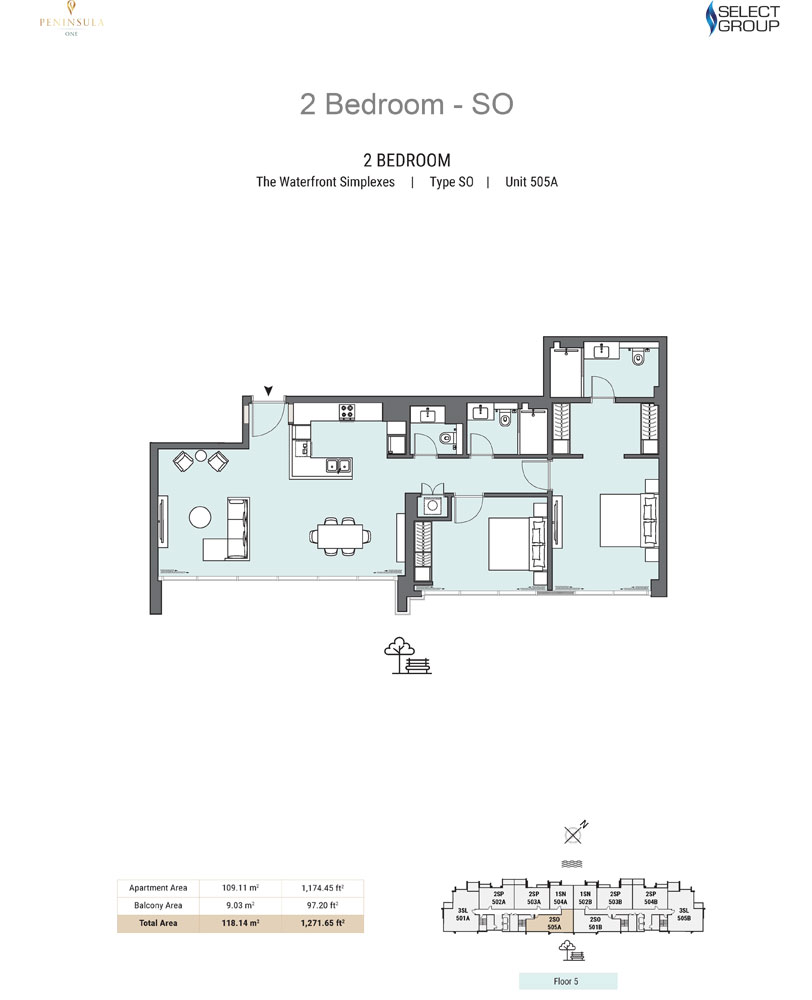 2 Bedroom All The Waterfront Simplexes, Type SO, Unit 505A 1271.65 Sq Ft Apartment