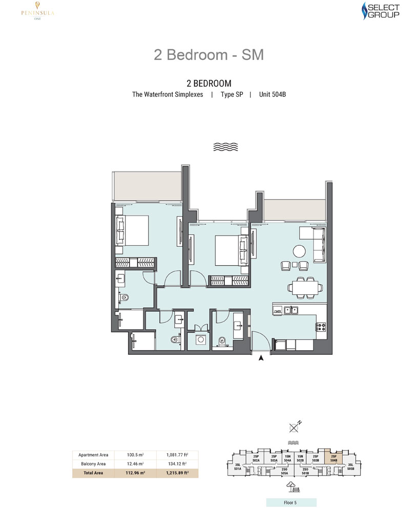 2 Bedroom All The Waterfront Simplexes, Type SP, Unit 504B 1215.89 Sq Ft Apartment