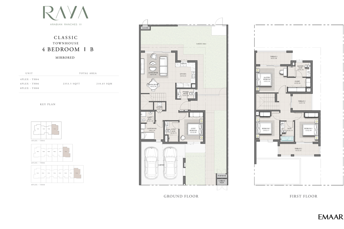 | 4 Bedroom | 4 Bedrooms + Maid | Classic Townhouse - B, Mirrored Unit 4 - 6 - 8 Plex - TH04 - TH06 - TH08 | 2353.50 Sq Ft | Townhouse | |
