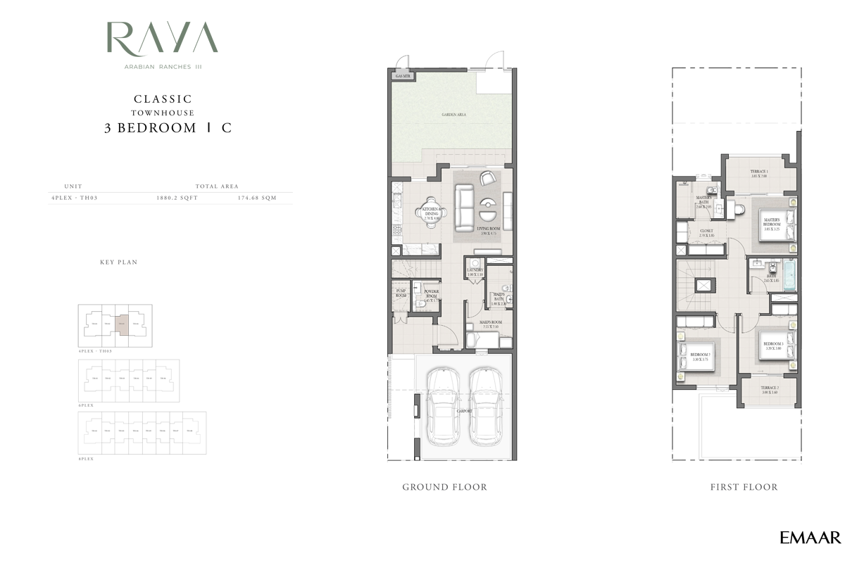 | 3 Bedroom | 3 Bedrooms + Maid | Classic Townhouse - C, Unit 4 Plex - TH03 | 1880.20 Sq Ft | Townhouse | |