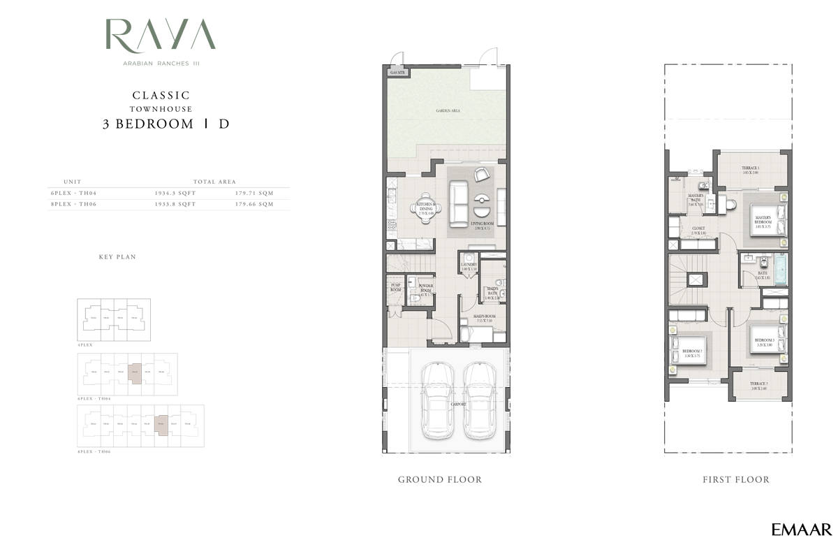 | 3 Bedroom | 3 Bedrooms + Maid | Classic Townhouse - D, Unit 6 - 8 Plex, TH04 - TH06 | 1934.30 Sq Ft | Townhouse | |