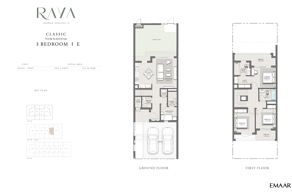 | 3 Bedroom | 3 Bedrooms + Maid | Classic Townhouse - E, Unit 6 Plex - TH05 | 1964.40 Sq Ft | Townhouse | |