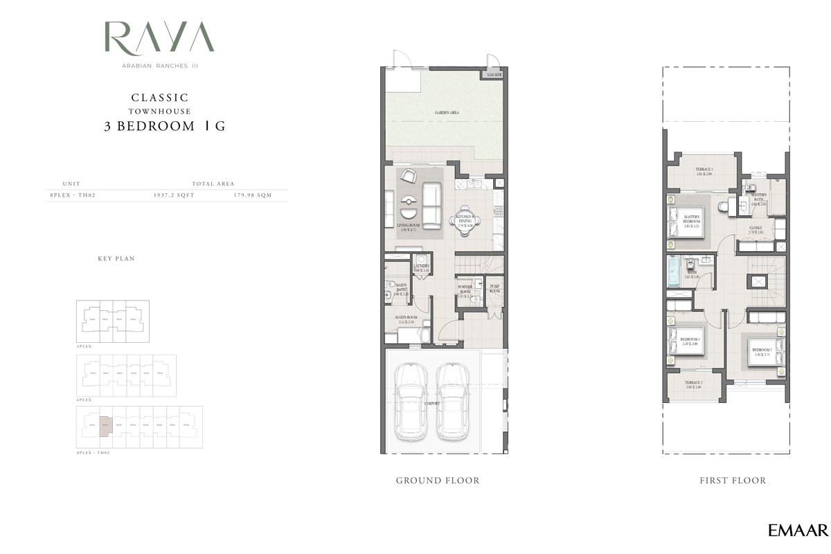 | 3 Bedroom | 3 Bedrooms + Maid | Classic Townhouse - G, Unit 8 Plex - TH02 | 1937.20 Sq Ft | Townhouse | |