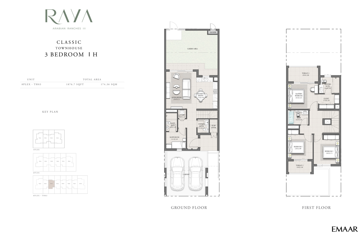| 3 Bedroom | 3 Bedrooms + Maid | Classic Townhouse - H, Unit 8 Plex - TH03 | 1876.70 Sq Ft | Townhouse | |