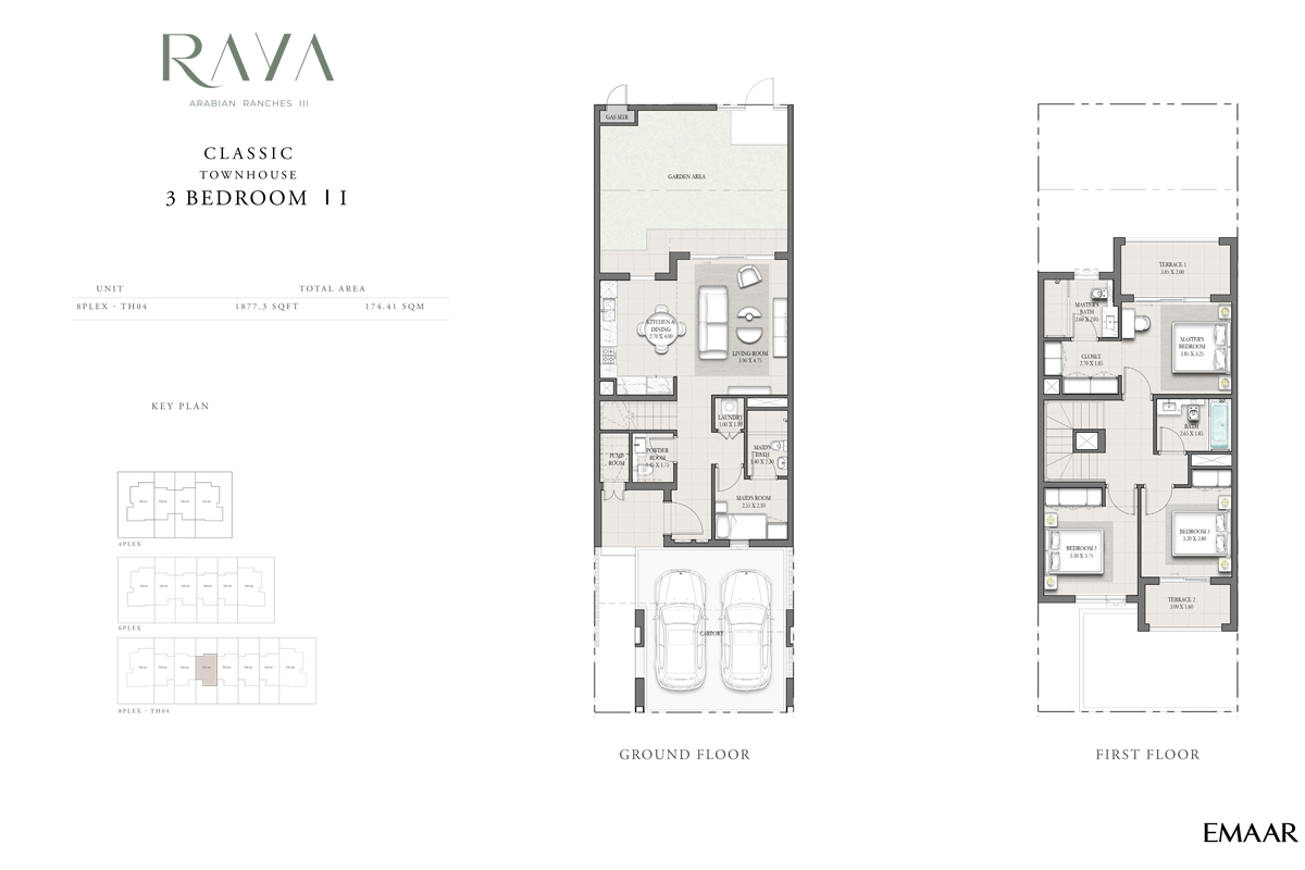 | 3 Bedroom | 3 Bedrooms + Maid | Classic Townhouse - I, Unit 8 Plex - TH04 | 1877.30 Sq Ft | Townhouse | |