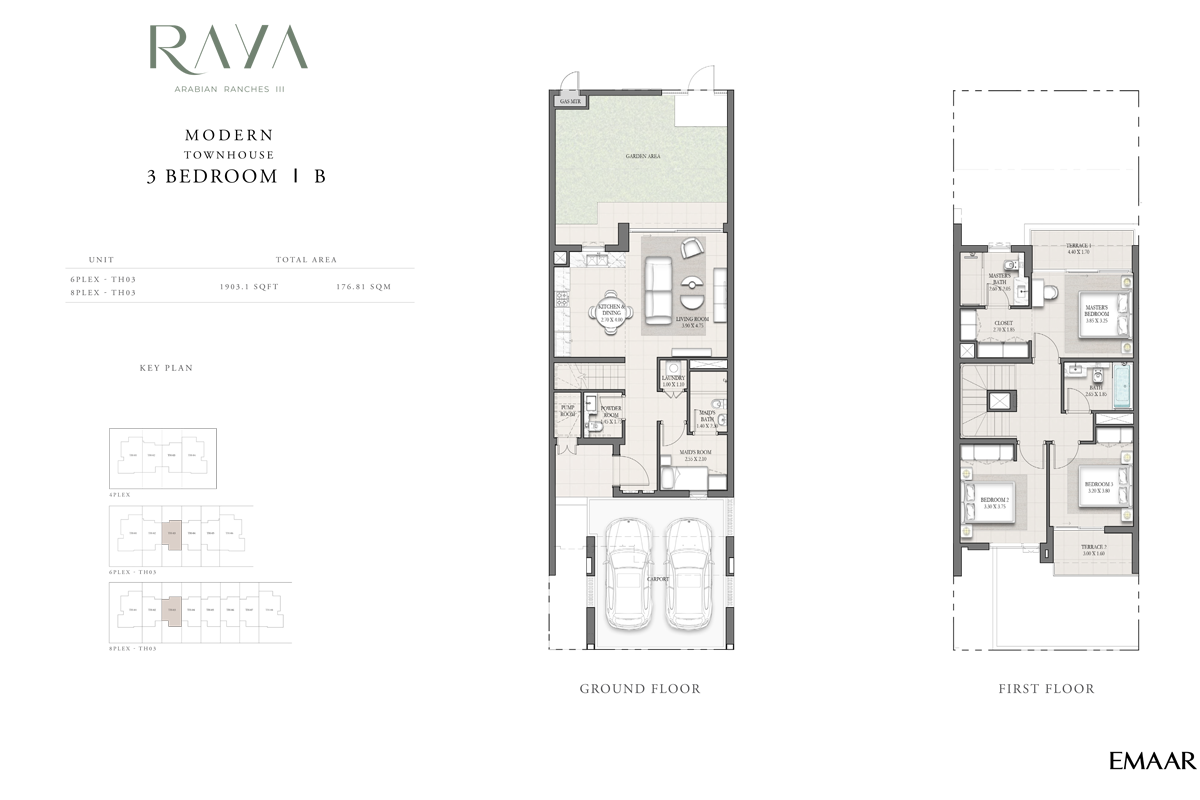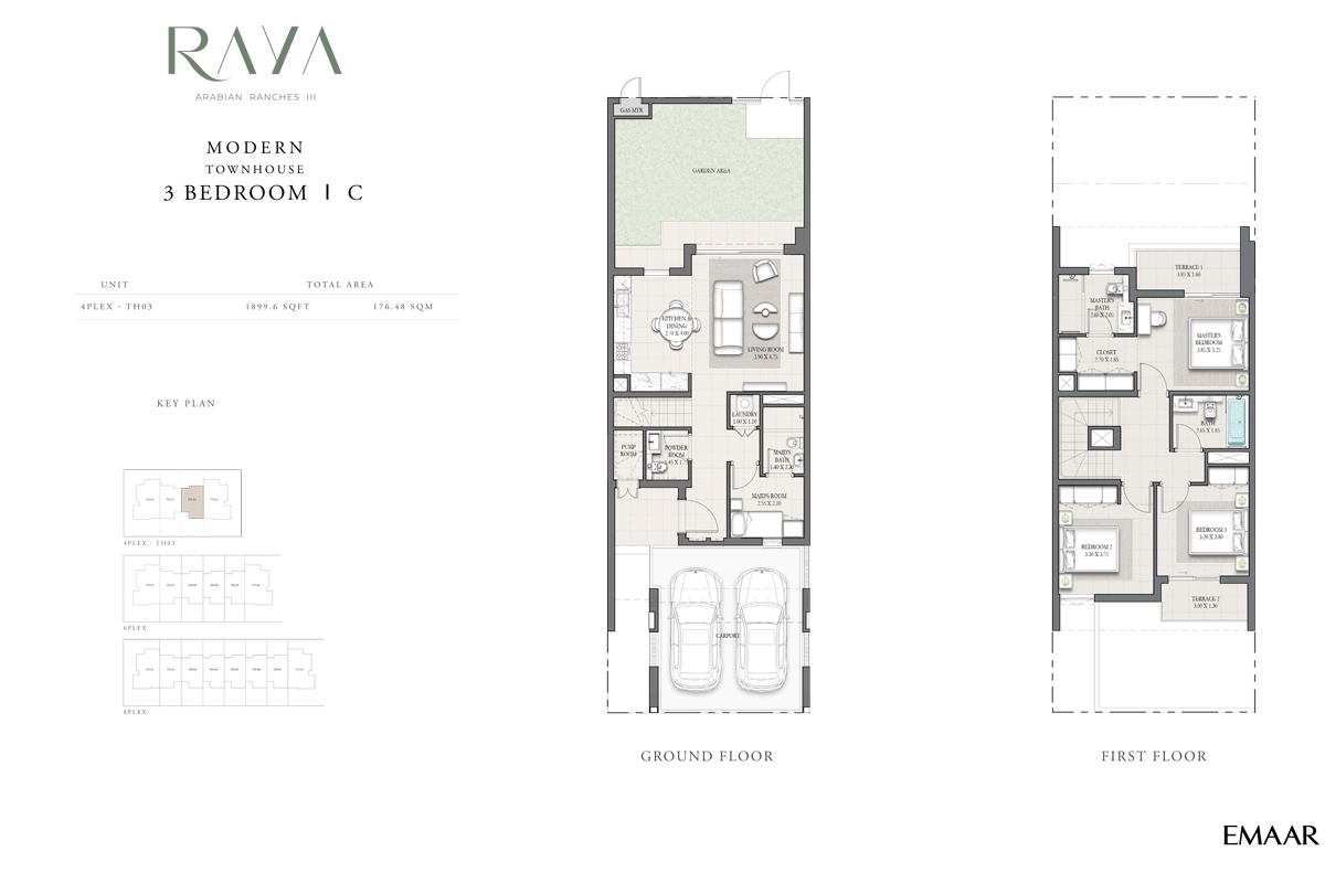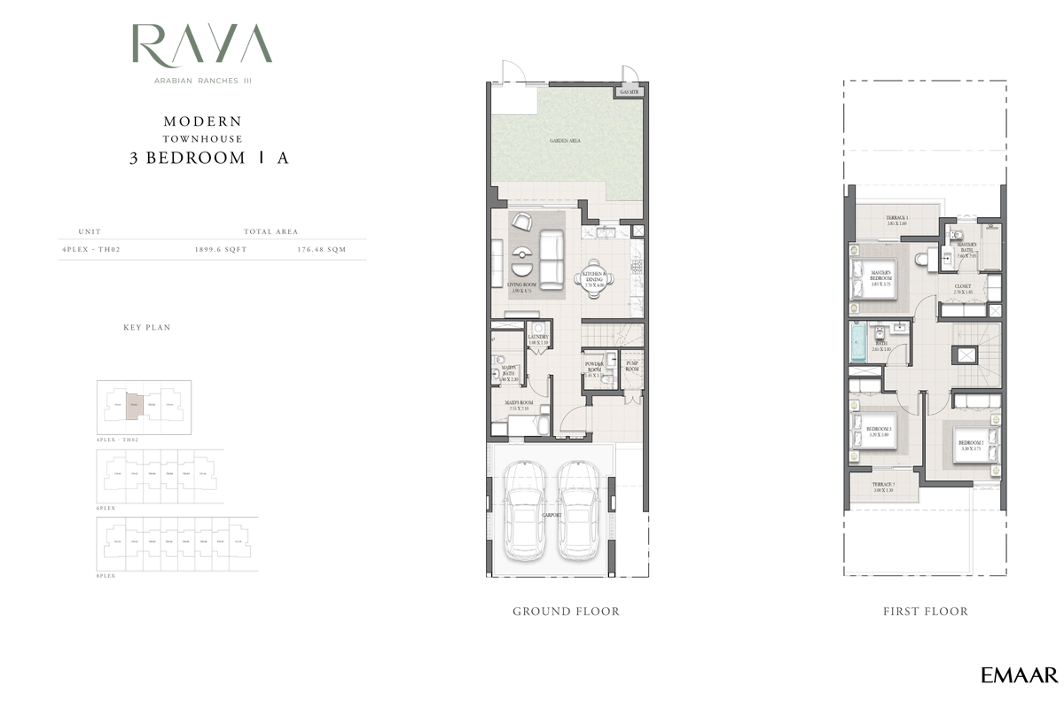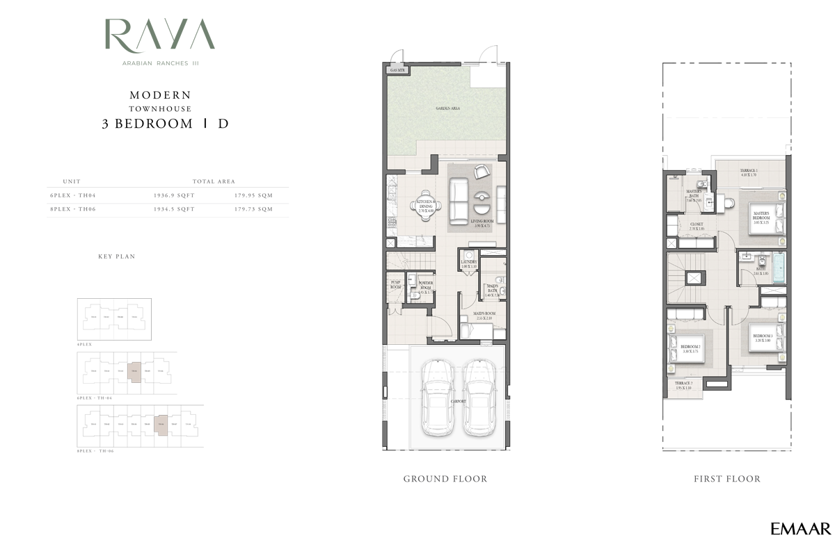 | 3 Bedroom | 3 Bedrooms + Maid | Modern Townhouse - C, Unit 4 Plex - TH03 | 1899.60 Sq Ft | Townhouse | |