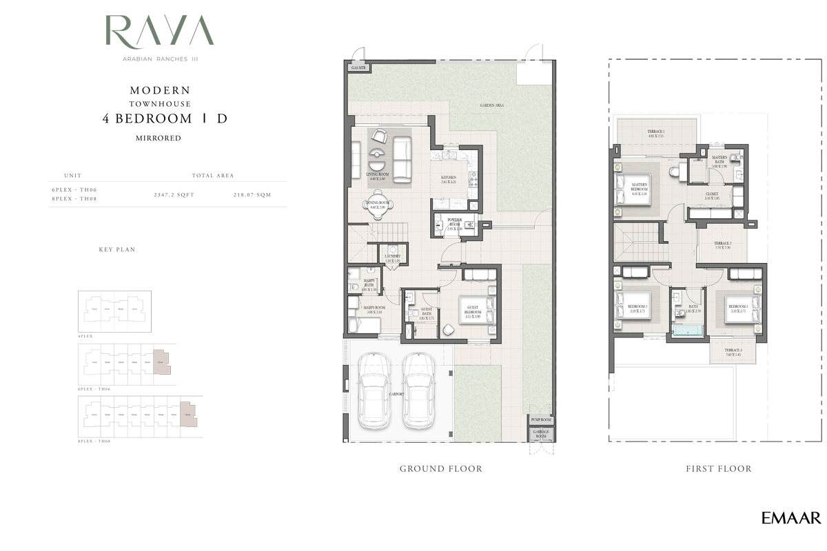 | 4 Bedroom | 4 Bedrooms + Maid | Modern Townhouse - D, Mirrored Unit 6 - 8 Plex, TH06 - TH08 | 2347.20 Sq Ft | Townhouse | |