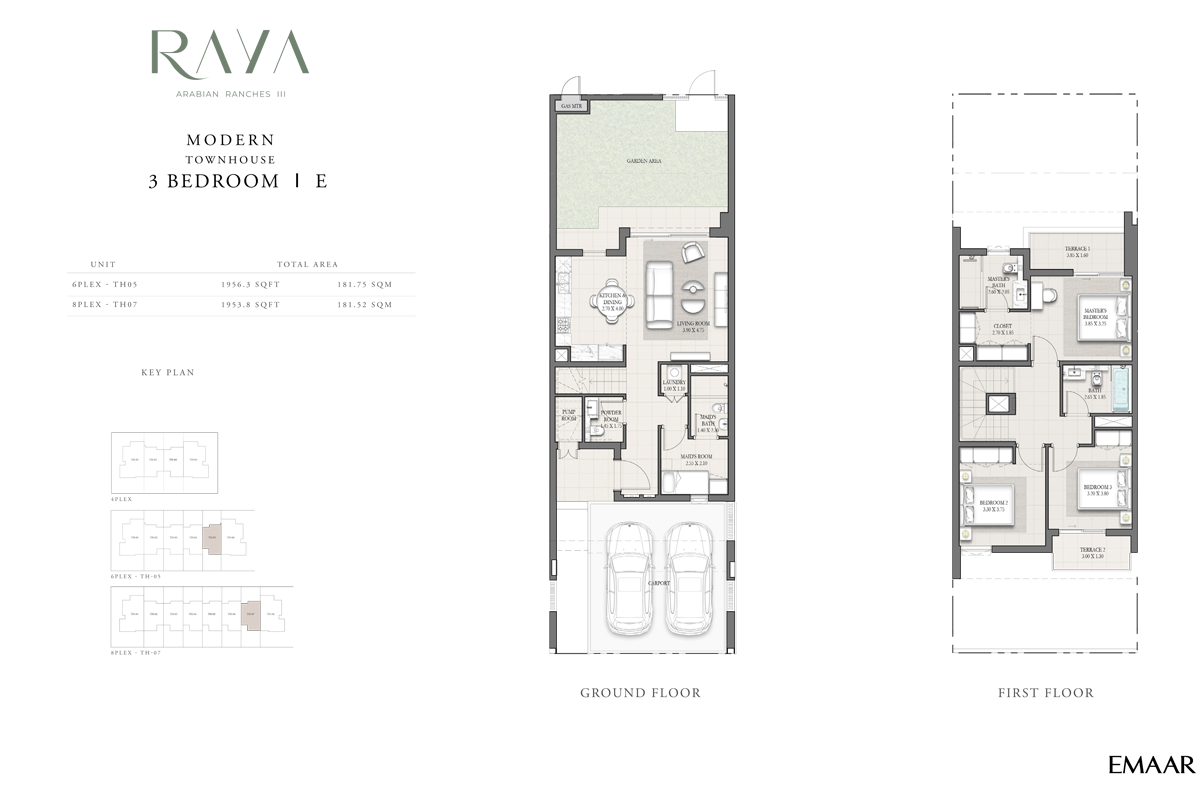 | 3 Bedroom | 3 Bedrooms + Maid | Modern Townhouse - E, Unit 6 - 8 Plex, TH05 - TH07 | 1956.30 Sq Ft | Townhouse | |