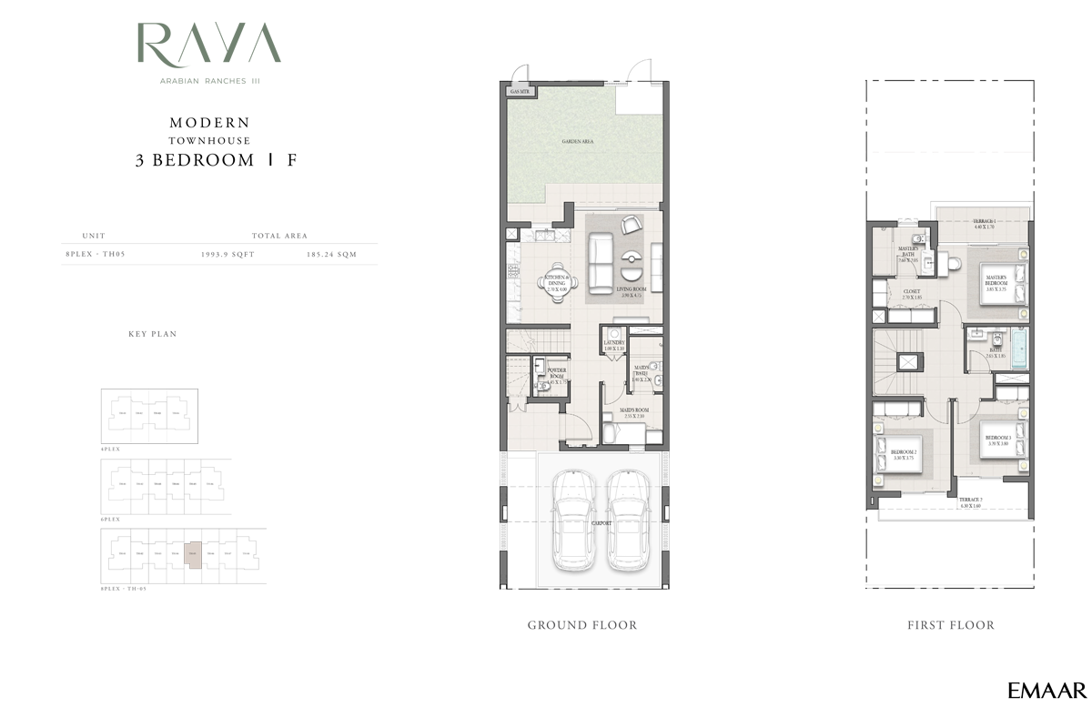 | 3 Bedroom | 3 Bedrooms + Maid | Modern Townhouse - F, Unit 8 Plex - TH05 | 1993.90 Sq Ft | Townhouse | |