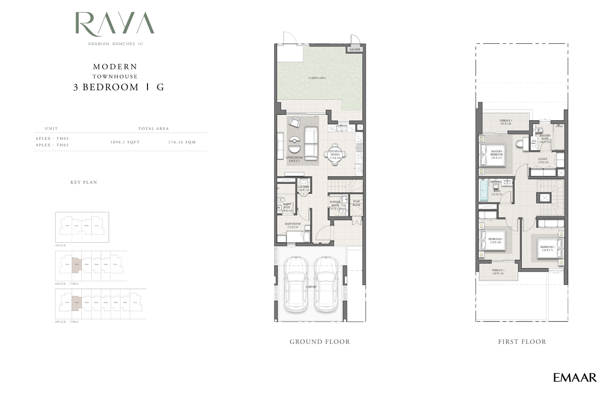 | 3 Bedroom | 3 Bedrooms + Maid | Modern Townhouse - G, Unit 6 - 8 Plex, TH02 | 1896.10 Sq Ft | Townhouse | |
