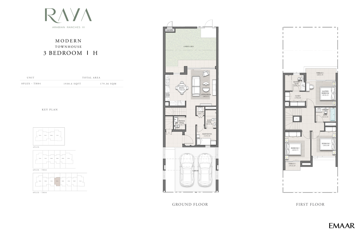 | 3 Bedroom | 3 Bedrooms + Maid | Modern Townhouse - H, Unit 8 Plex - TH04 | 1930.60 Sq Ft | Townhouse |