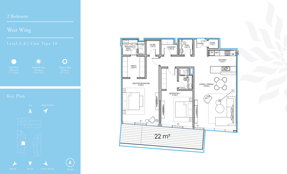 2 Bedrooms - West Wing 2 Bedroom L-2-8- T-10 1722.00 Sq Ft -