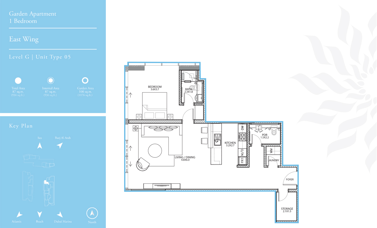 1 Bedroom - East Wing 1 Bedroom L-G T-5 1076.00 Sq Ft -