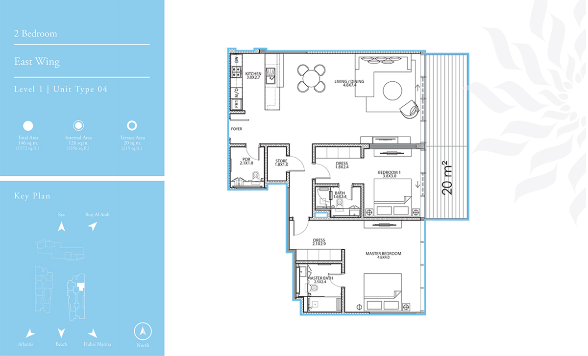 2 Bedrooms - East Wing 2 Bedroom L-1 T-4 1572.00 Sq Ft -