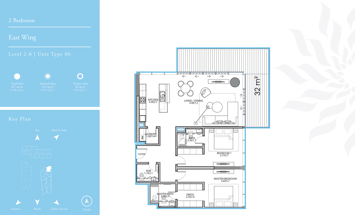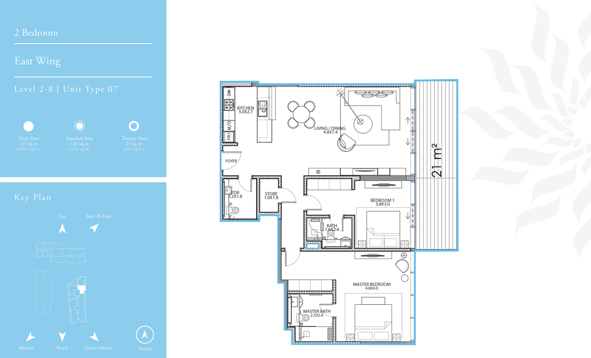 2 Bedrooms - East Wing 2 Bedroom L-2,8 T-7 1585.00 Sq Ft -