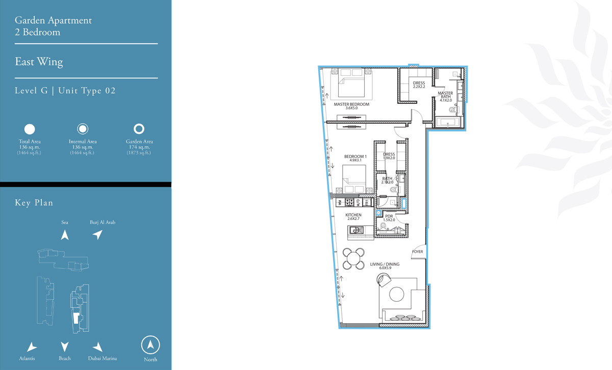 2 Bedrooms - East Wing 2 Bedroom L-G T-6 1356.00 Sq Ft -