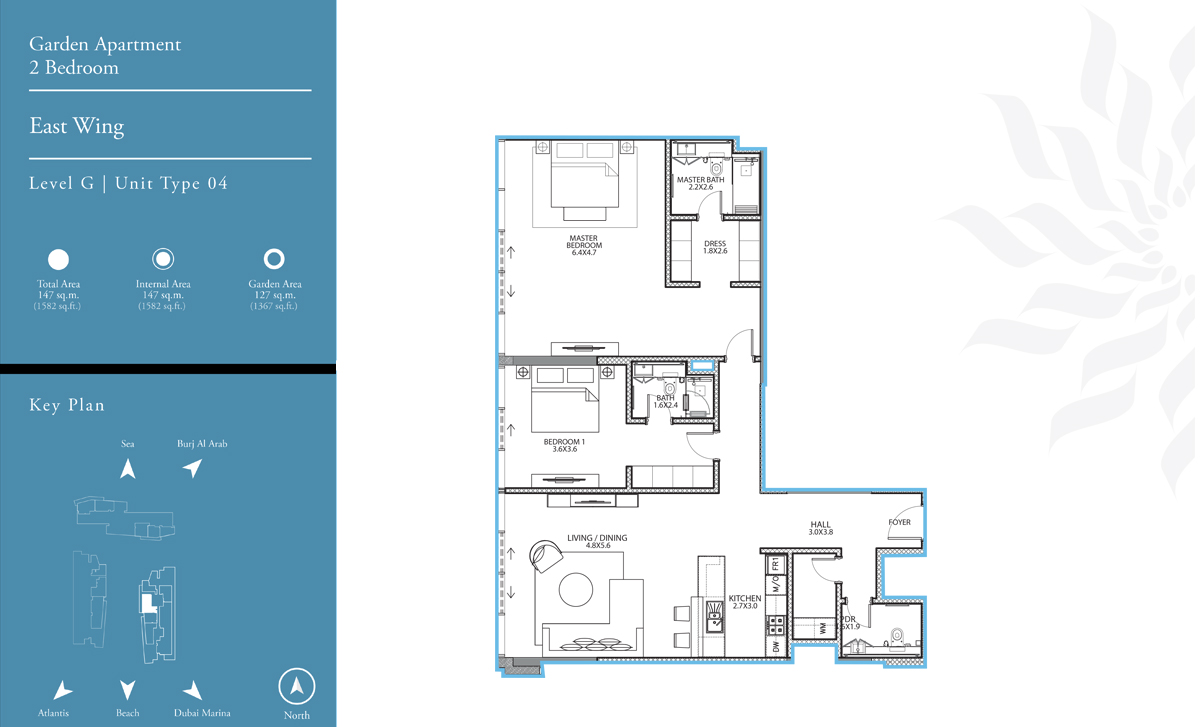 2 Bedrooms - East Wing 2 Bedroom L-G T-4 1582.00 Sq Ft -