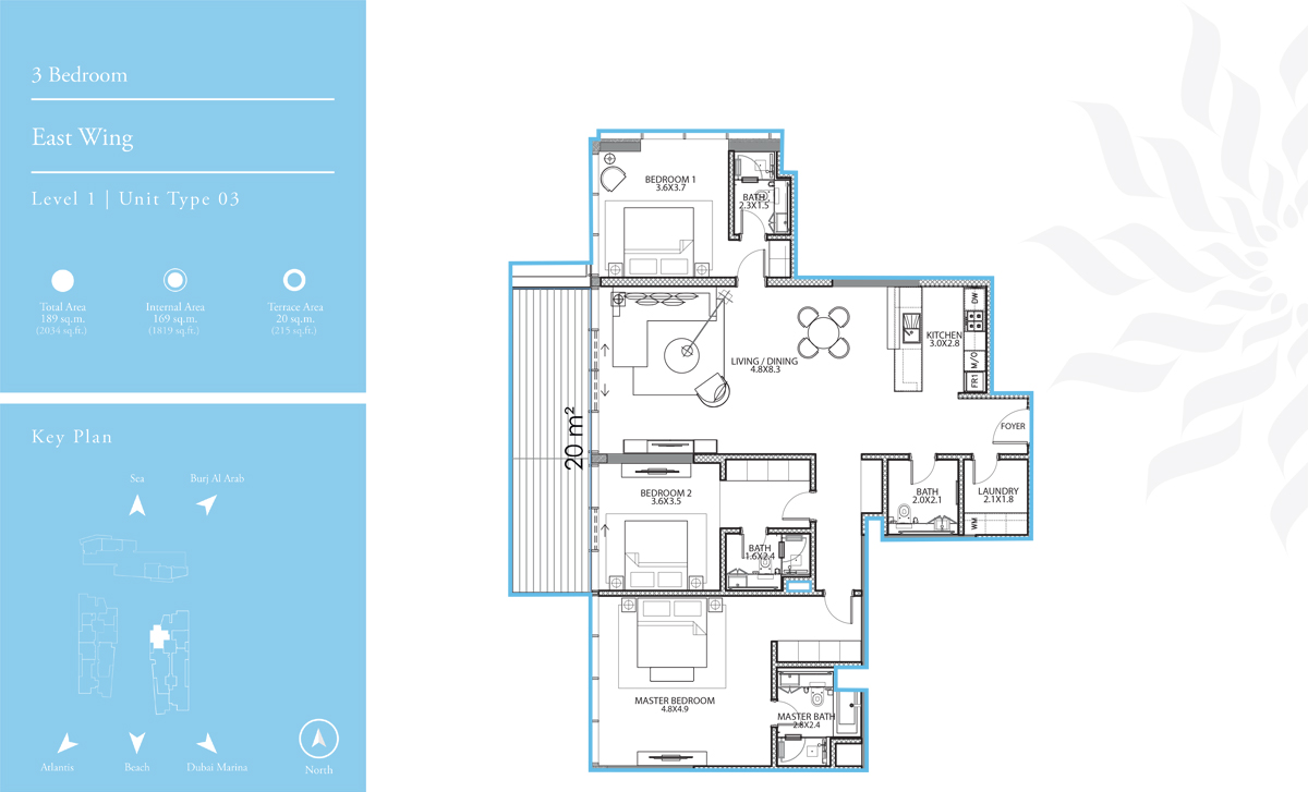 3 Bedrooms - East Wing 3 Bedroom L-1 T-3 2034.00 Sq Ft -