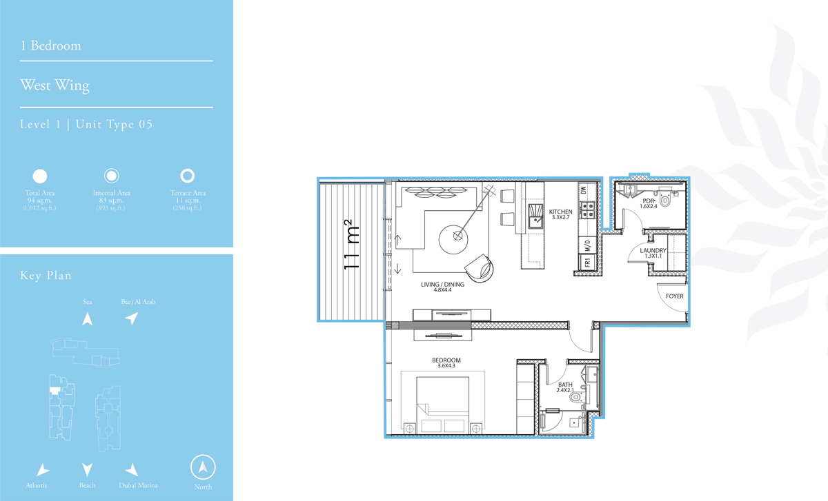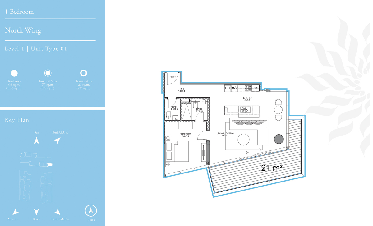 1 Bedroom - North Wing 1 Bedroom L-1 T-1 1055.00 Sq Ft -