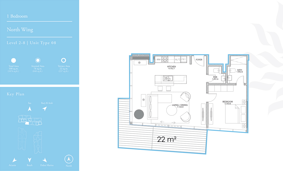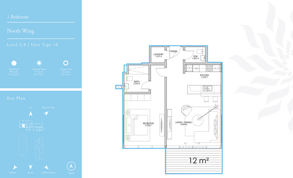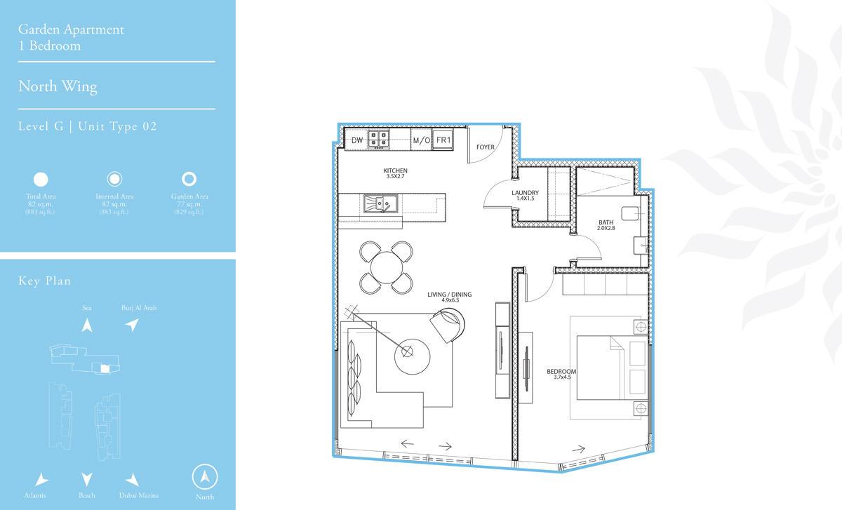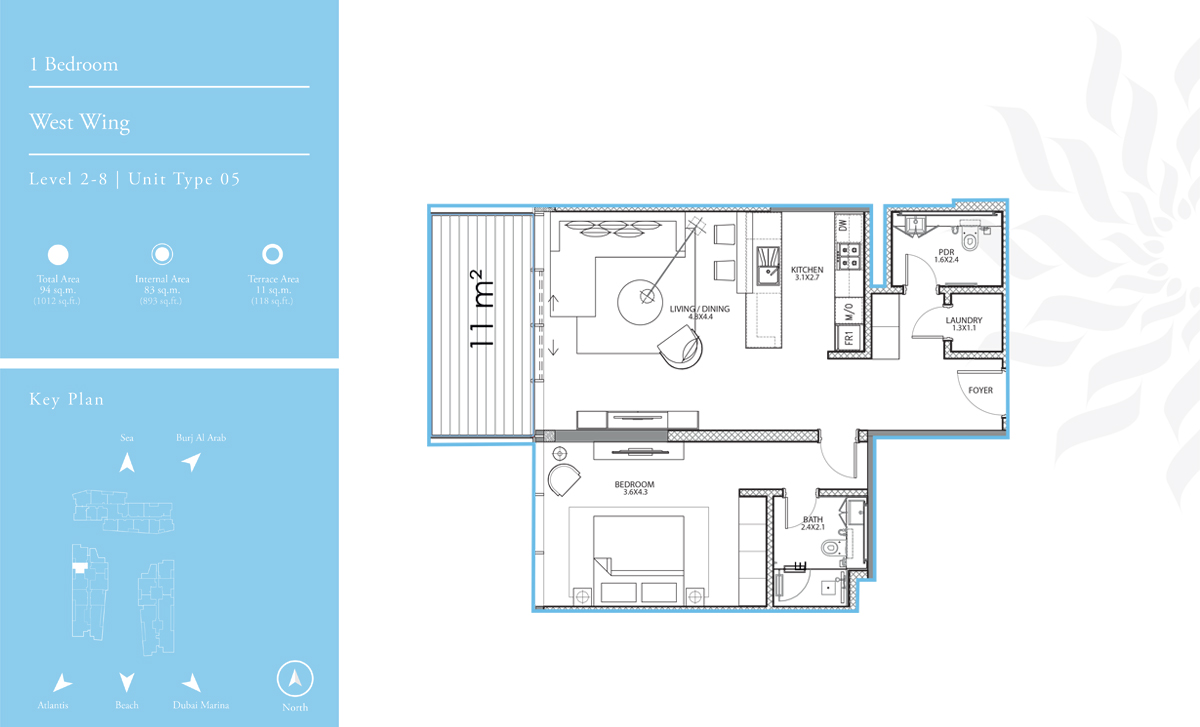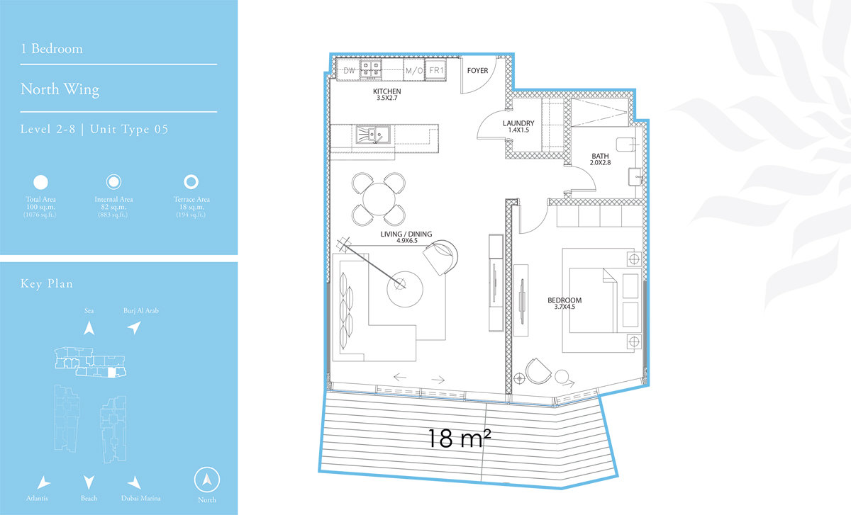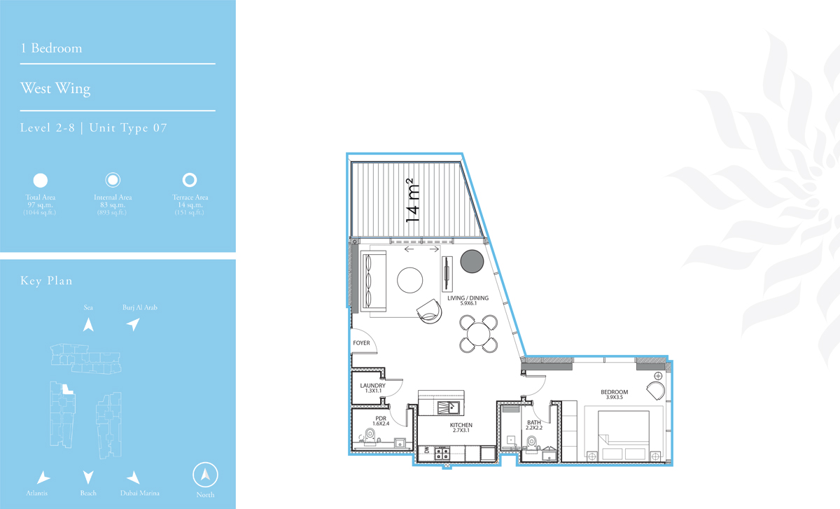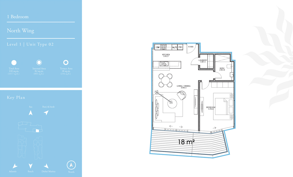 1 Bedroom - North Wing 1 Bedroom L-2-8 T-8 1076.00 Sq Ft -