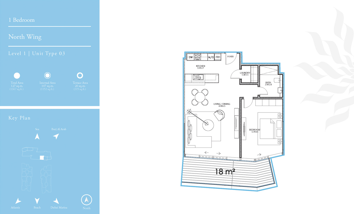 1 Bedroom - North Wing 1 Bedroom L-G T-1 1119.00 Sq Ft -