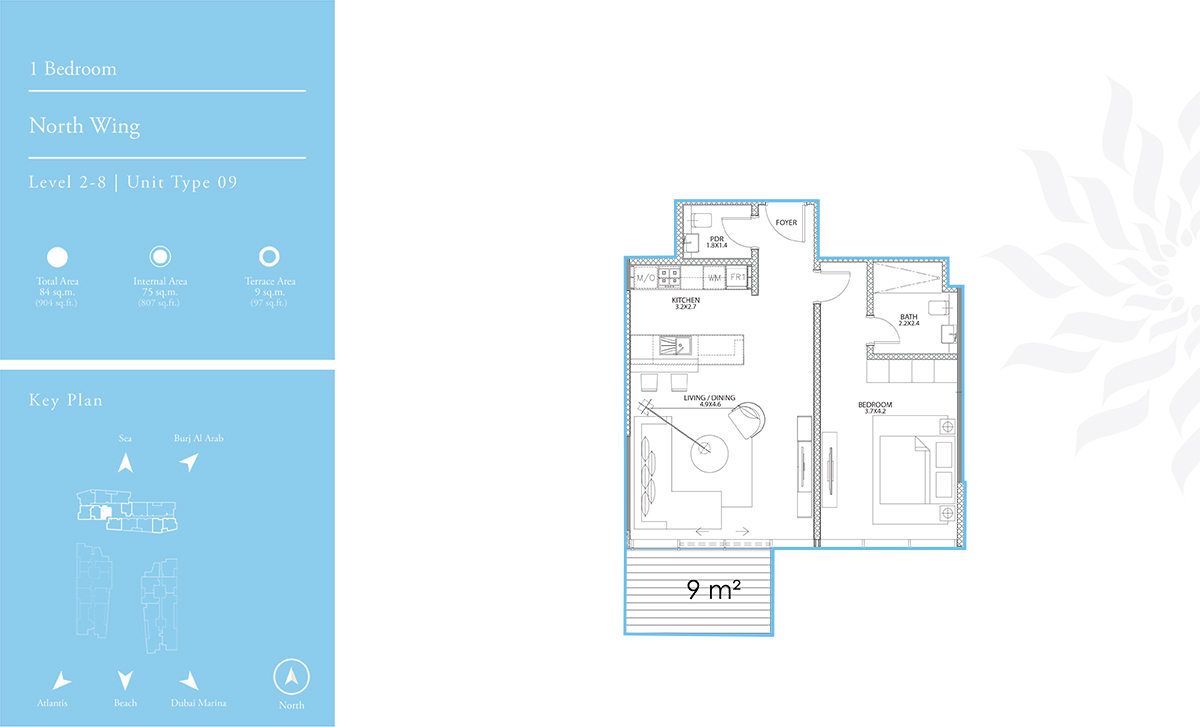 1 Bedroom - North Wing 1 Bedroom L-2-8 T-9 904.00 Sq Ft -