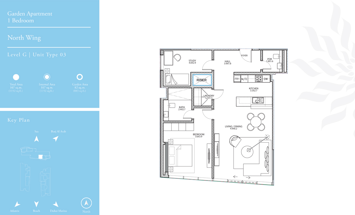 1 Bedroom - North Wing 1 Bedroom L-G T-3 1152.00 Sq Ft -