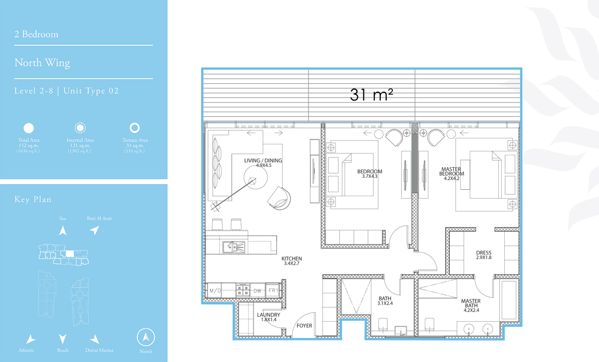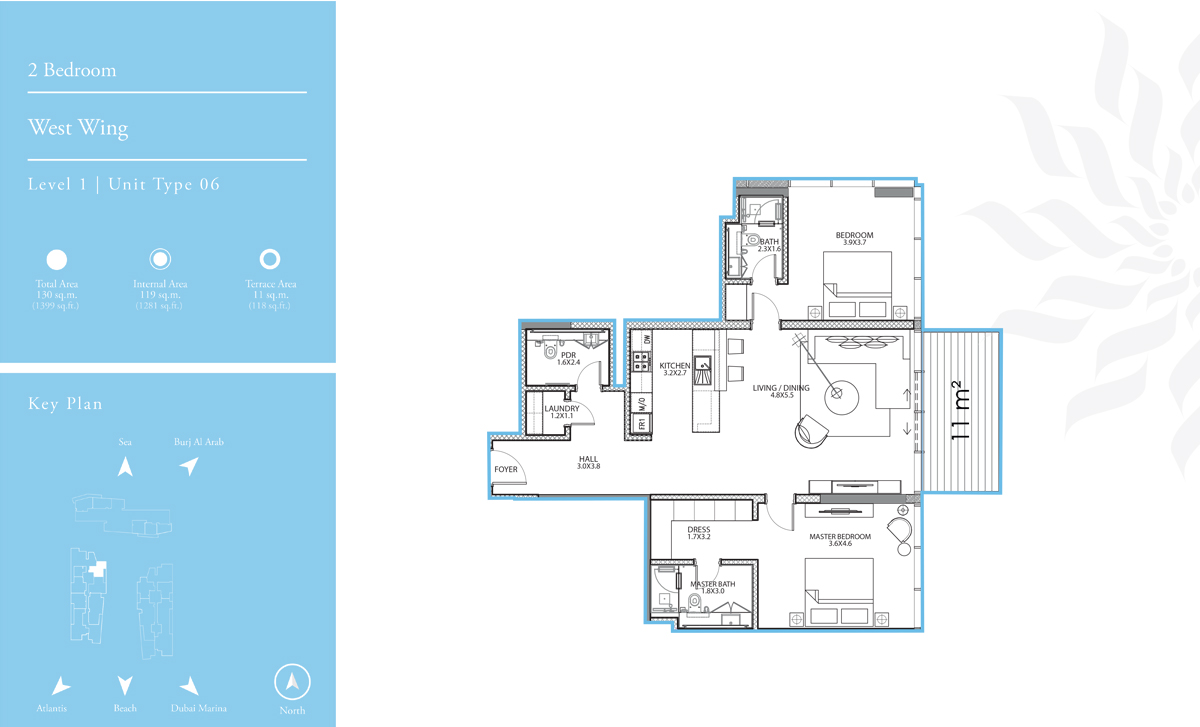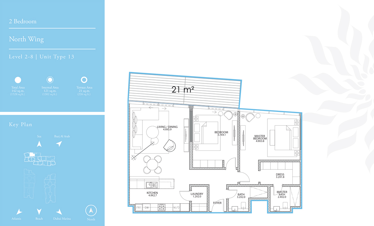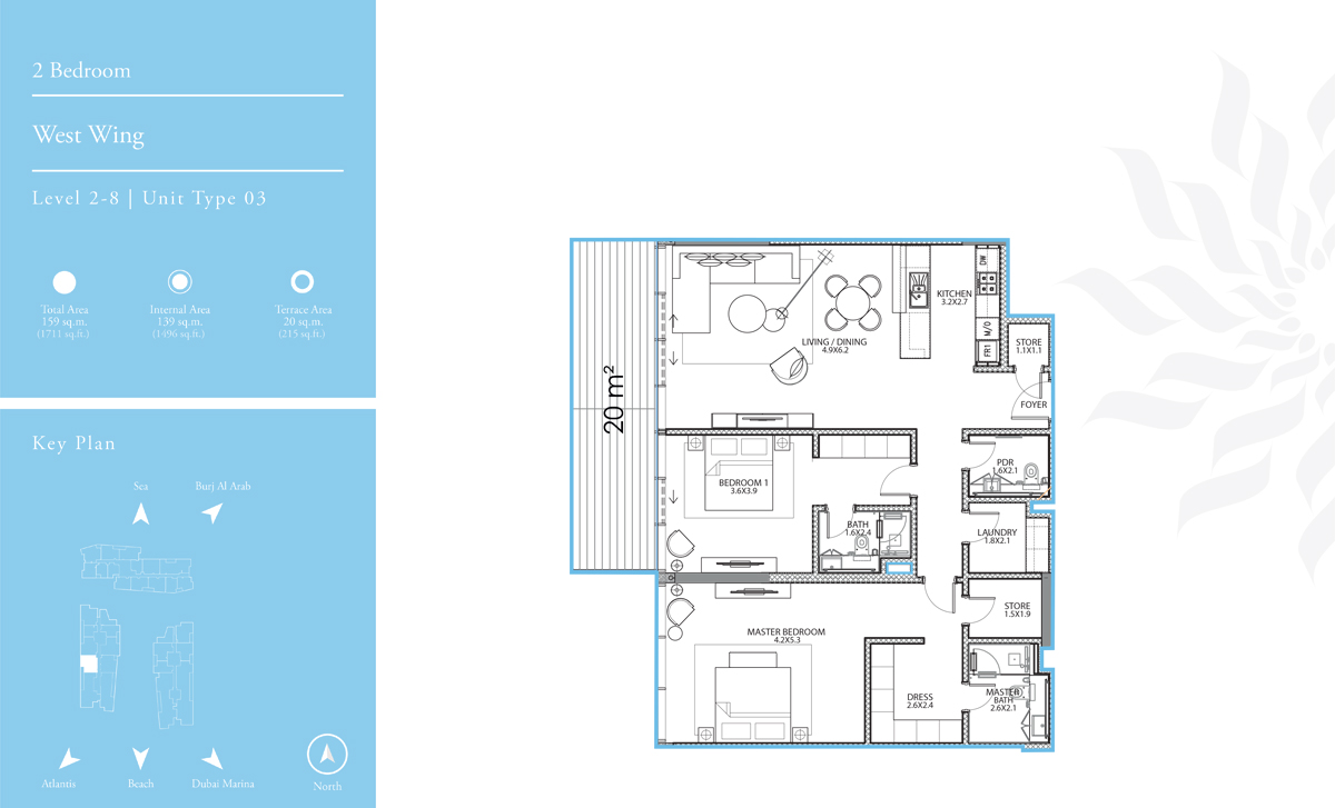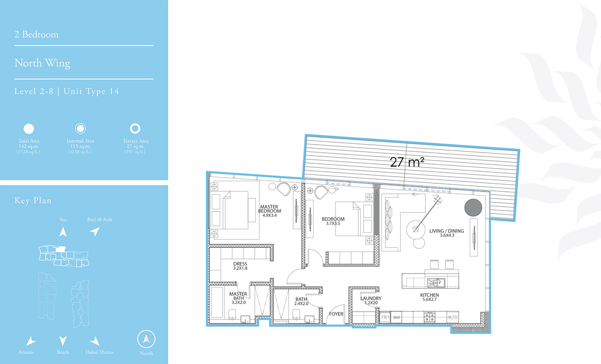 2 Bedrooms - North Wing 2 Bedroom L-2-8 T-3 1528.00 Sq Ft -