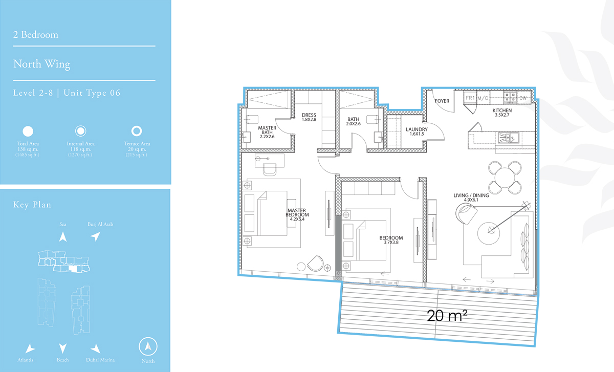 2 Bedrooms - North Wing 2 Bedroom L-2-8 T-6 1485.00 Sq Ft -