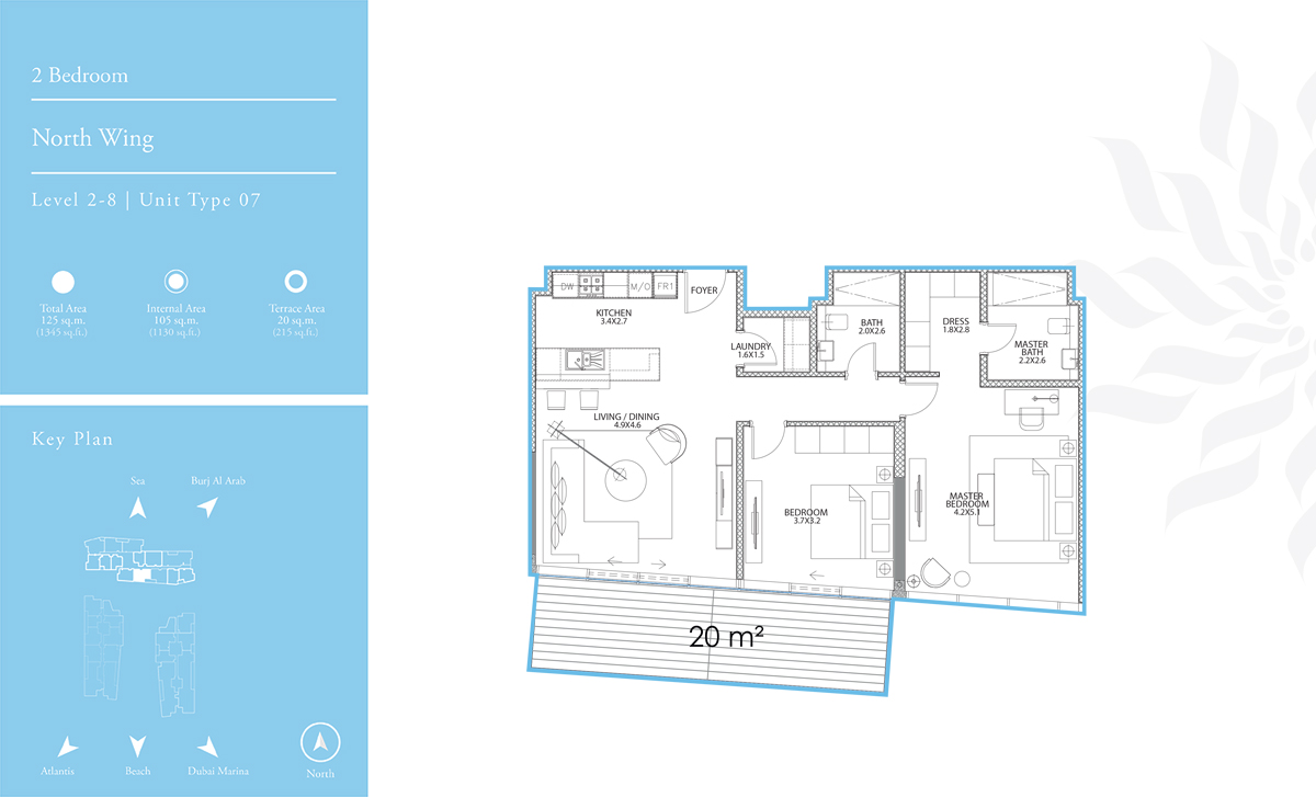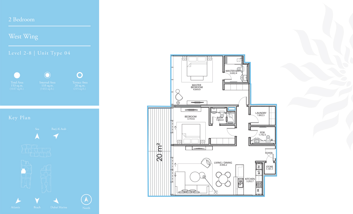 2 Bedrooms - North Wing 2 Bedroom L-2-8 T-2 1604.00 Sq Ft -