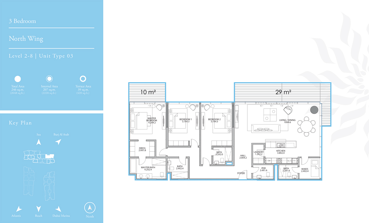 3 Bedrooms - North Wing 3 Bedroom L-2-8 T-3 2648.00 Sq Ft -
