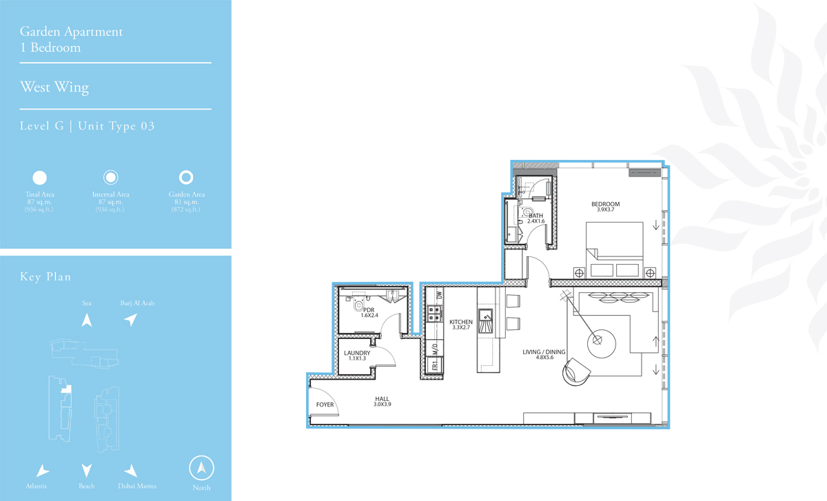 1 Bedroom - West Wing 1 Bedroom L-G T-3 936.00 Sq Ft -