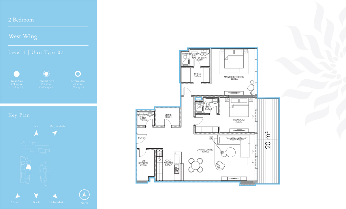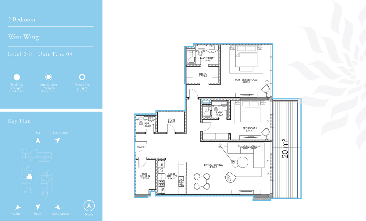 2 Bedrooms - West Wing 2 Bedroom L-1 T-7 1841.00 Sq Ft -